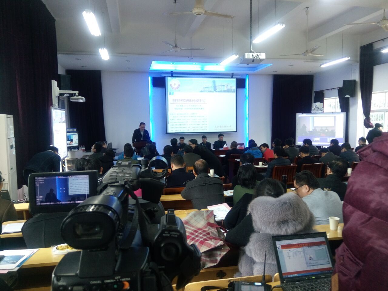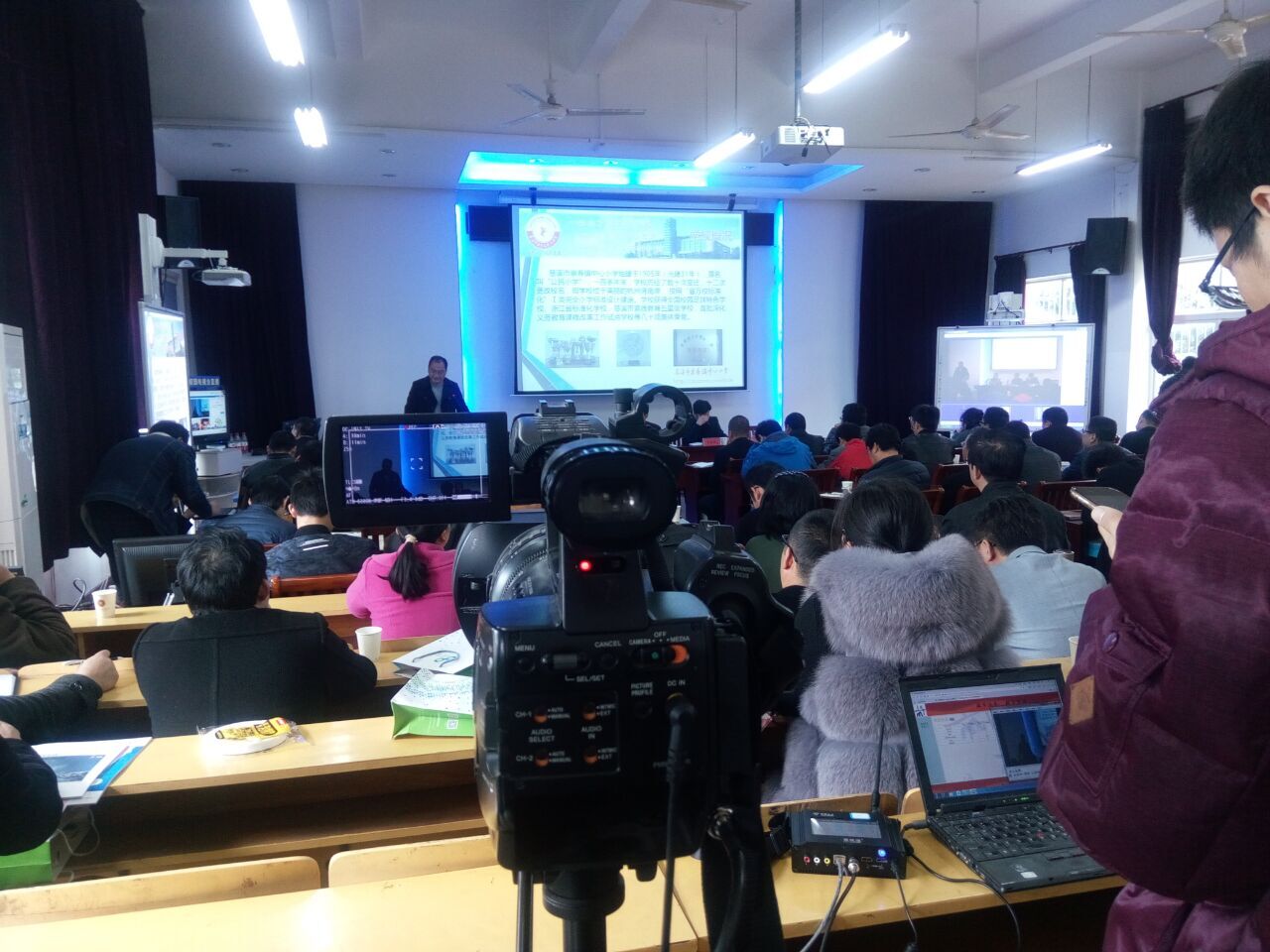 2017年3月23日,慈溪教育局在龙山小学会议通过翼视通设备全程直播,下图为会议现场直播画面.