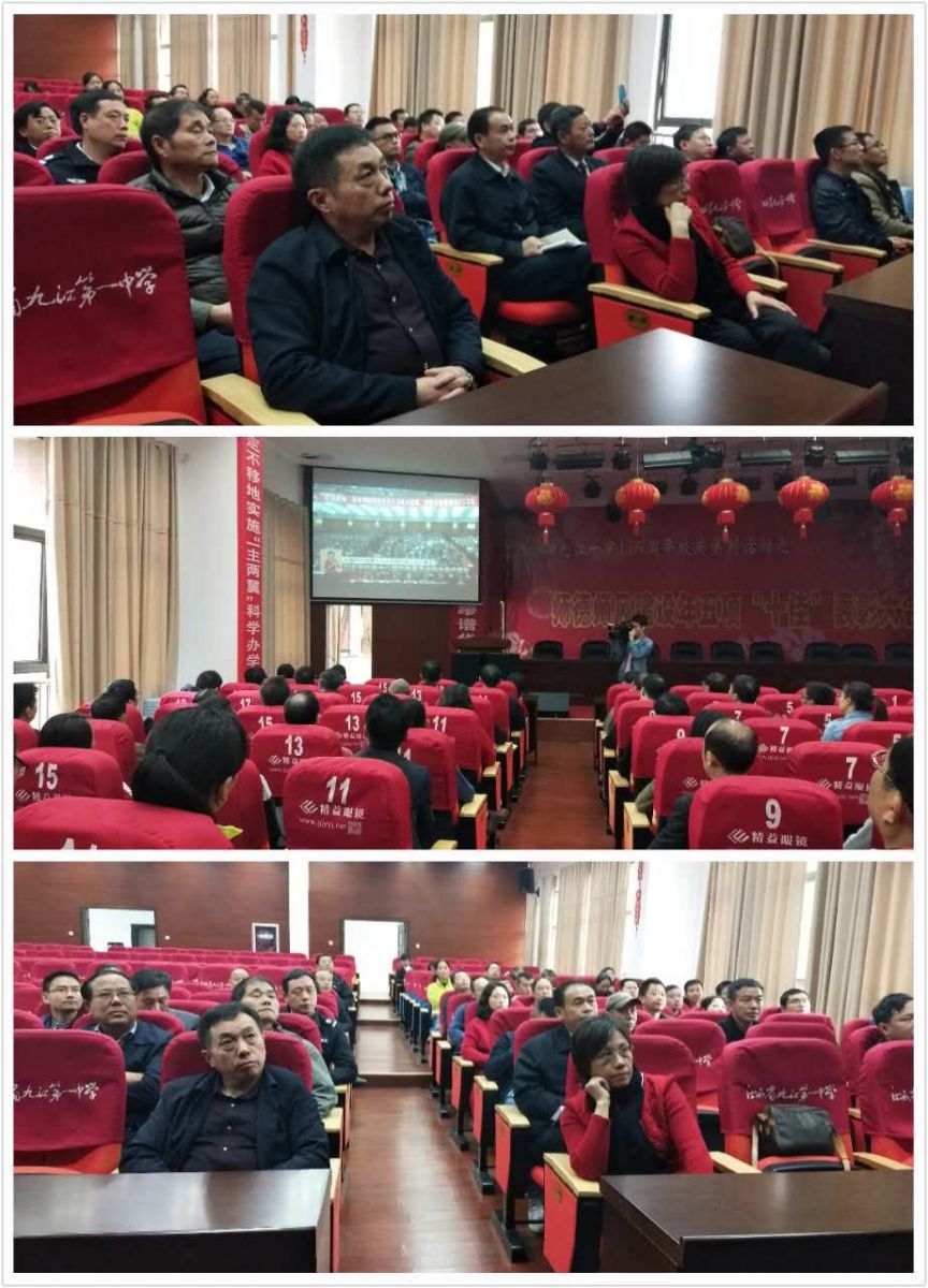 九江第一中学领导班子携全体党员用刚建成的行业版itv收看党的十九大。