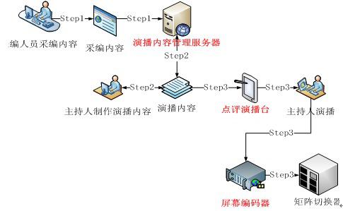 以可视、交互、实时协同的多媒体处理为平台,通过视、听、画、写等方式,为视频内容创作提供规范、高效、灵活、安全、可靠读报、网页视频图文点评系统,由点评演播台和屏幕编码器两大部分构成。