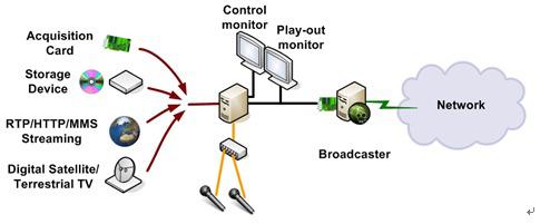 演播平台负责视频采集,简单的编辑如声音、文字、图片或其他视频的叠加,播放控制与预监,成品视频流的编码与播放监视。